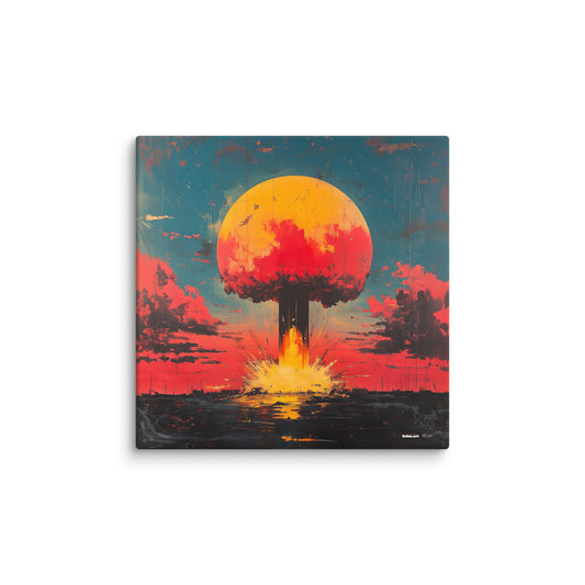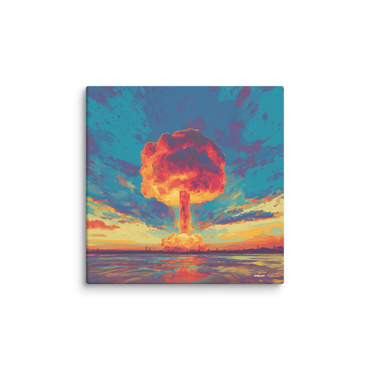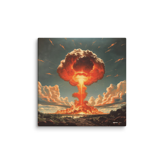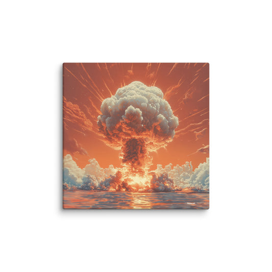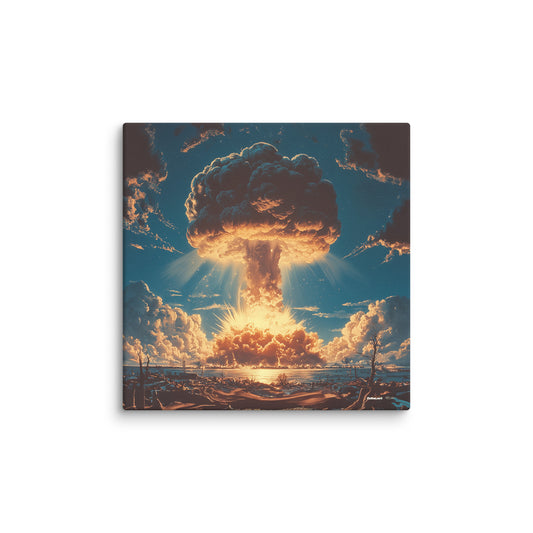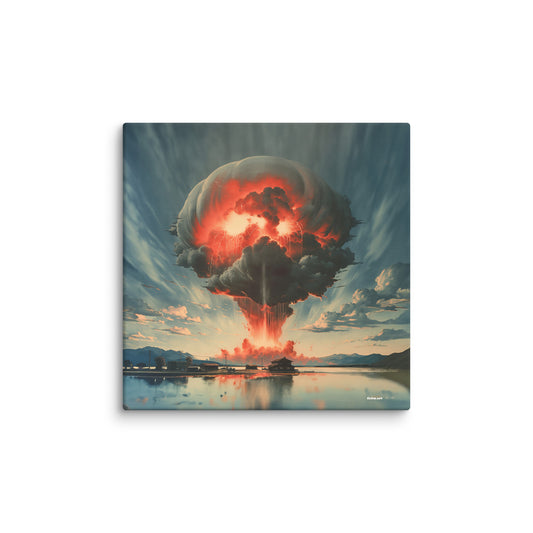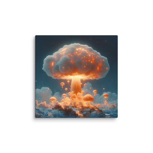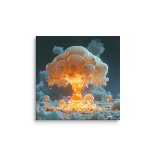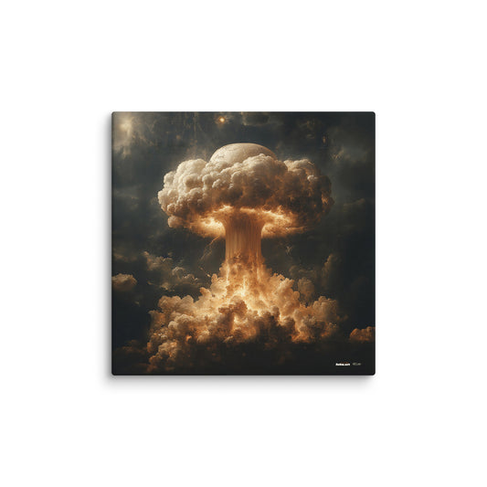 ✖ ツ In dieser Kollektion verschmelzen Ästhetik und Mahnung zu einer Einheit, die durchaus als zynisch verstanden werden kann. Die ikonische Form des Atompilzes wird mittels AI-generierter Kunst in ein faszinierendes visuelles Erlebnis transformiert. Die Bilder verstehen sich als Hommage an die verschiedensten Kunststile – von der Renaissance bis hin zur Moderne. ➽