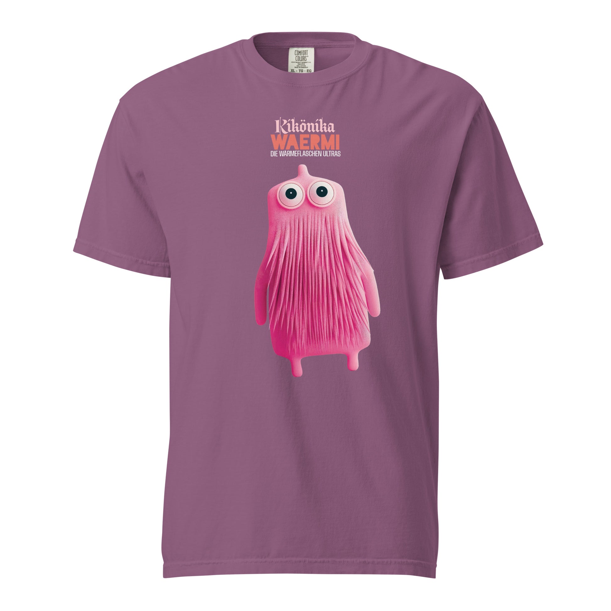 ➽ Aus den folgenden Tweets Breuers entwickelte Huck Haas zusammen mit dem Illustrator Midge Ernie die Serie "Waermis - Die Wärmflaschen Ultras" für das finnische Fernsehen. Nur zwei Jahre später feierten die Waermis in einer Realverfilmung mit Larry Hagman als warmer Bruder "Elmondo Waermi" und Iris Berben als seine halbgare Schwester "Kikønika Waermi" weltweite Erfolge. Doch dann wurde es still um die Waermis. Deshalb freuen wir uns, Ihnen, liebe Freundinnen und Freunde der lauwarmen, wabbeligen Gummiflaschen, die Kollektion "WAERMIS - die Wärmflaschen Ultras" auf verschiedenen Textilprodukten präsentieren zu können. Den Anfang machen die T-Shirts "Elmondo", "Kikønika" & "Plüscha" in hellen und dunklen Farben.
